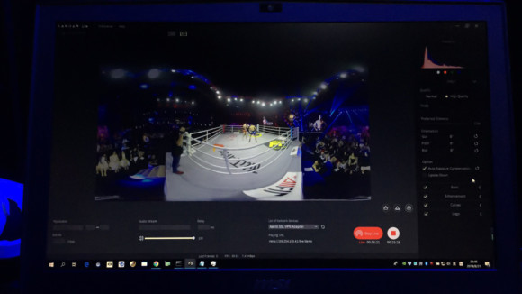 在深圳方面使用了Kandao Obsidian R相机。 来自Obsidian R中所有六个摄像头的视频流然后用Kandao Live软件在H.265中进行拼接和编码,以产生8K 360度实时RTMP视频流。Visbit接收了8K RTMP视频流,使用三星S8 / S9手机和Oculus Go回放到Gear VR上的Visbit 8K VR Player应用程序。