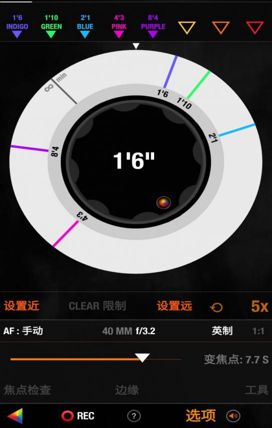 和英文版本一样,免费中文版本拥有全部的操作功能,可以在 APP 中进行所有摄影的设置选项,可以控制摄影机录制的开关,可以方便快捷地更换 ISO、分辨率、帧速率、快门等选项。当摄影机在车外、水下、航拍、稳定器上可以通过智能终端对摄影机进行控制,这对摄影师来说非常方便。比如在稳定器上,为了让摄影机更轻便,可以去掉 RED 监视器,通过遥控控制。