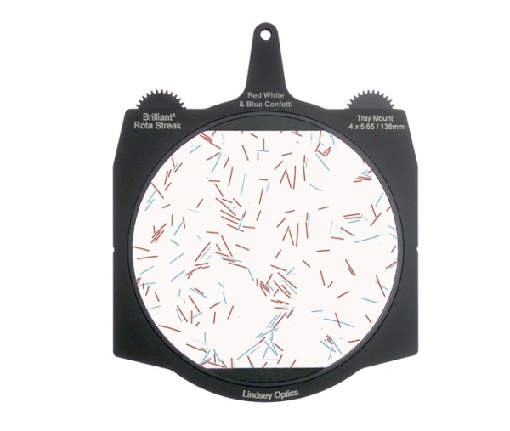 Rota-Streak滤镜永久安装在一个4”x 5.65”齿轮滤镜托盘中,其允许眩光旋转适用于任何角度的静态眩光,或动态旋转眩光、星形和漩涡眩光效果。手柄上的1/4 20螺纹孔允许您安装电机,因此可以通过FIZ或远程电动跟随聚焦系统控制效果。