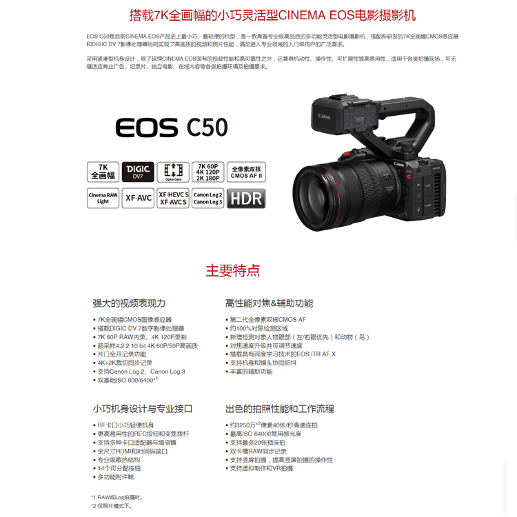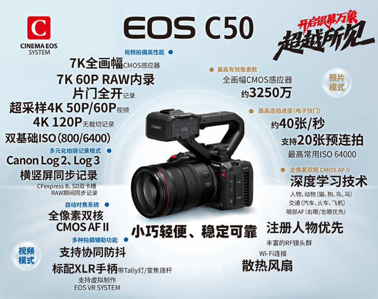 佳能(CANON)新品:CINEMA EOS C50电影摄影机 官方标配