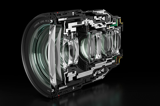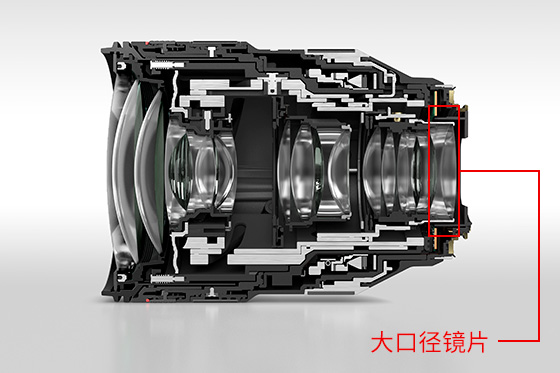 EOS R系列的RF卡口,在提供了54毫米大口径的同时,大幅缩短了相机的法兰距,使镜头的后对焦距离更短。大大提升了镜头光学设计的灵活性。通过运用短后对焦距离,在靠近图像感应器的位置放置大口径镜片,使画面周边也同样具备高画质,同时,还实现了镜头光学设计的小型化。RF28-70mm F2 L USM在视觉上虽然尺寸较大,但性能上看,这曾是在EF卡口下因尺寸过大而无法产品化的镜头,这个尺寸可谓合理。